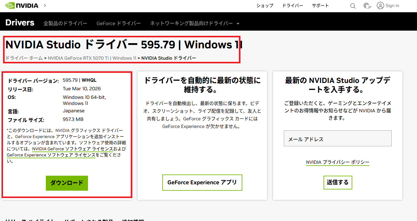 NVIDIAのWebサイトから直接Studio Driverをダウンロードする